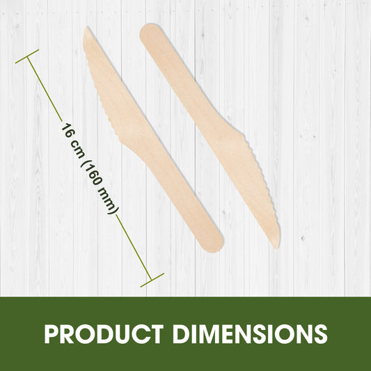 Disposable Birch Wood Wooden Knives 160mm – Single-Use Cutlery for Parties & Events – Strong Table Knives for Hot & Cold Food – Pairs with Disposable Plates & Bowls