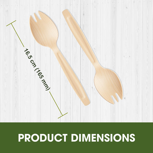 Disposable Birch Wood Spork 165mm – Single-Use Wooden Cutlery for Hot & Cold Foods, Parties, Catering, Events, Takeaway Meals, Picnic & Food Service Use (Sporks | 16.5cm)