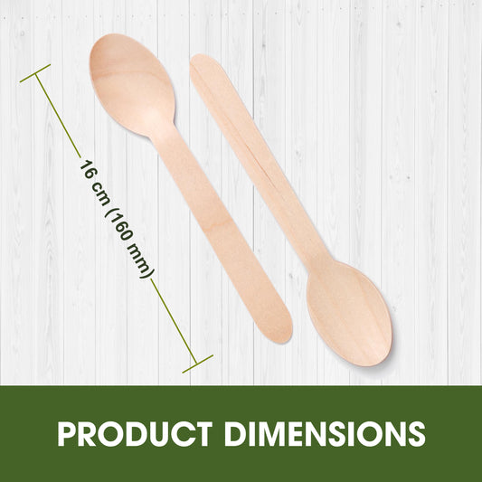 Disposable Wooden Spoon 160mm – Single Use Birchwood Cutlery for Hot & Cold Foods, Smooth Finish Spoon for Parties, Catering, Events & Everyday Dining
