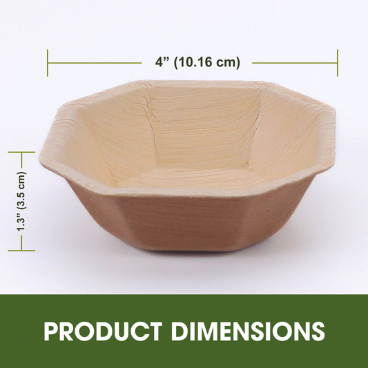 Disposable Palm Leaf Octa Bowls 4 Inch 120ml Natural Areca Leaf Bowls for Snacks & Small Salads Suitable for Parties, Buffets, Events, Catering & Food Service Use