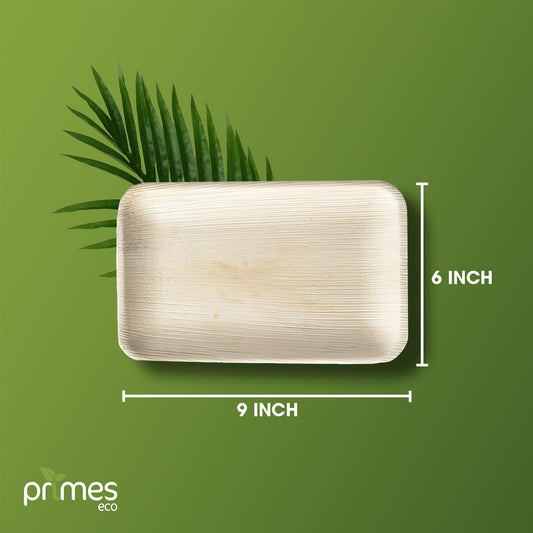 PRIMES ECO 9 x 6 Inch, Disposable Palm Leaf Rectangle Plate, Starters Dessert, Display Tray Parties, Wooden Plates, Eco Friendly Biodegradable Food Trays, Hotel office Wedding Picnic party