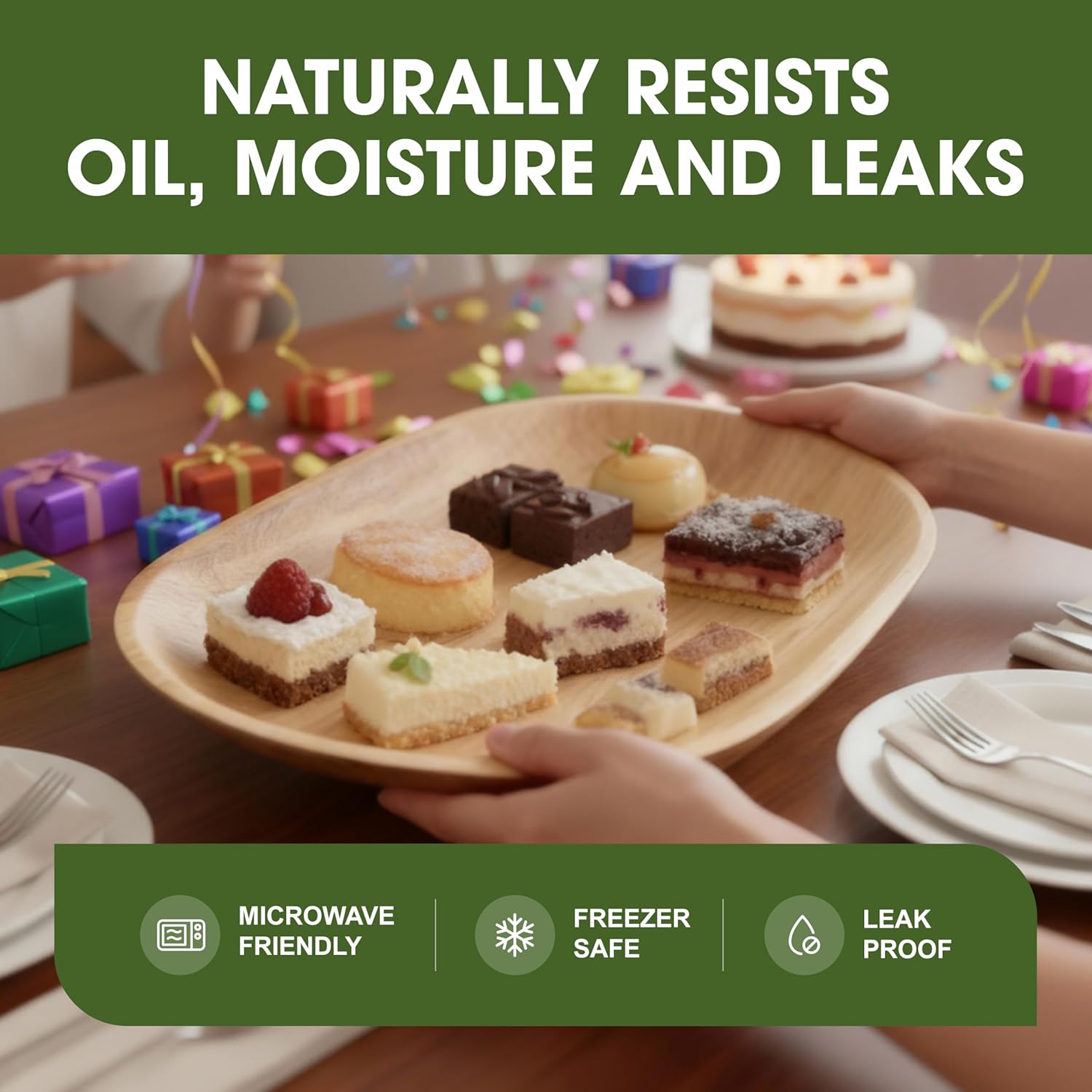 - STURDY & HOT-FOOD READY – Serve confidently with our disposable palm leaf serving platter that won’t bend, leak or soften. Ideal for hot dishes, buffets and BBQs, it delivers the strength of a hot food tray without plastic or waste.