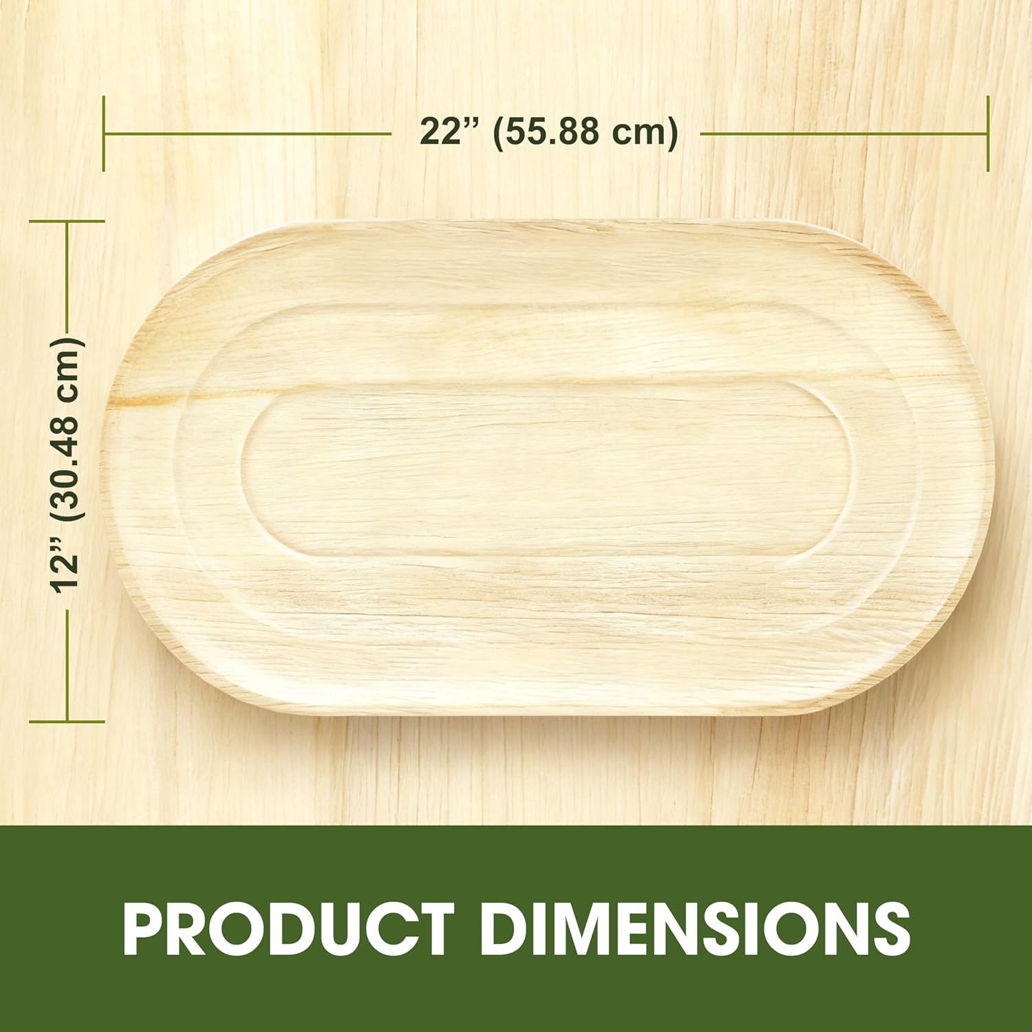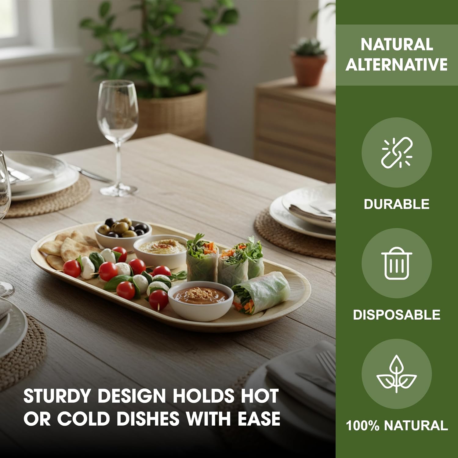 - ELEVATE YOUR EVENT PRESENTATION – Our large oval serving tray (22″ × 12″ / 56 × 30 cm) brings elegance to every occasion. Perfect for starters, canapés, charcuterie or hot meals, this eco-friendly food tray combines premium style with planet-friendly design.