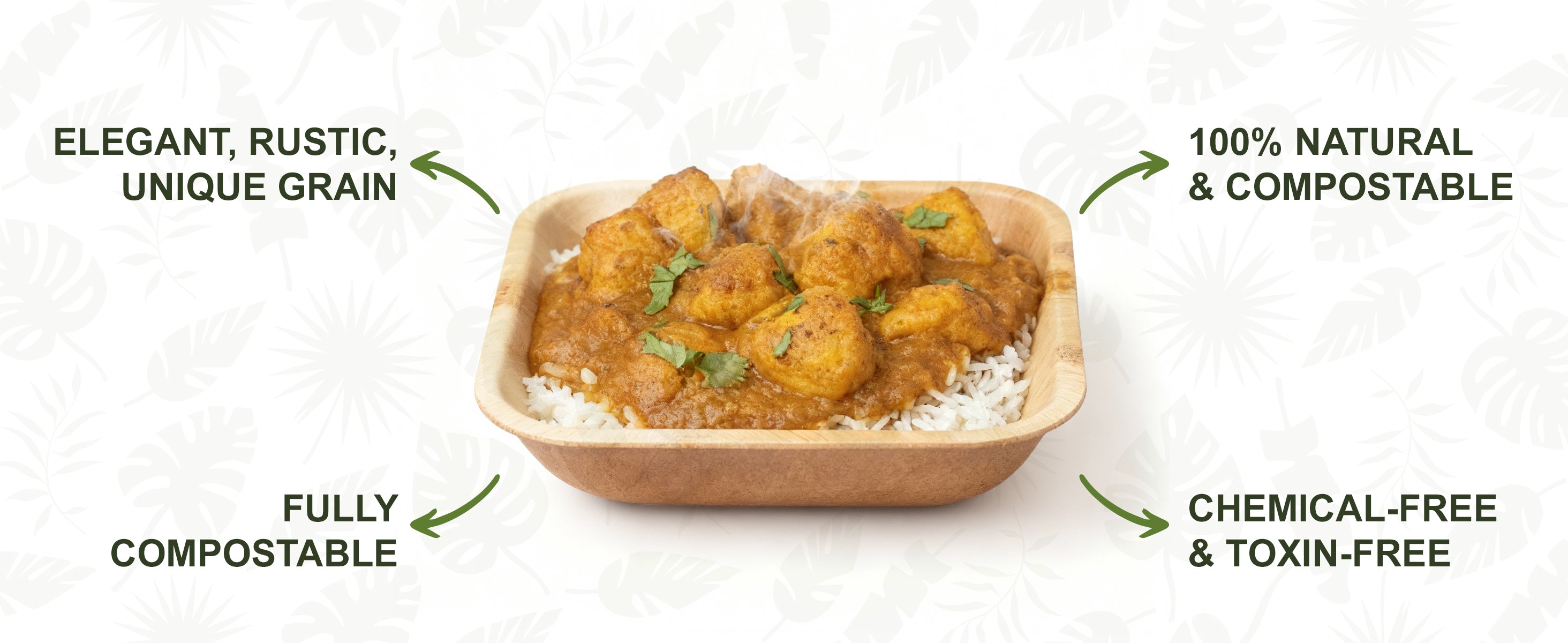 Enjoy your meals with peace of mind using our palm leaf plates, ensuring safety and sustainability with every bite.